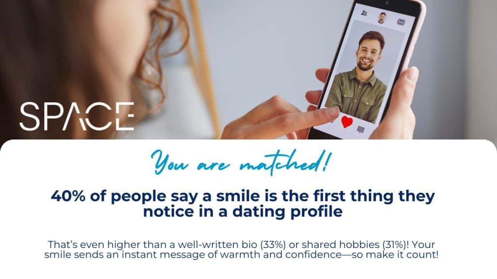 Dr. Affan, Clinical Director at Space Dental, says: “A genuine smile not only makes you look more attractive but also makes others feel at ease. When online dating, connections are built through photos before conversations, therefore it’s no surprise that people who smile in their dating profile photos tend to attract more attention.”
